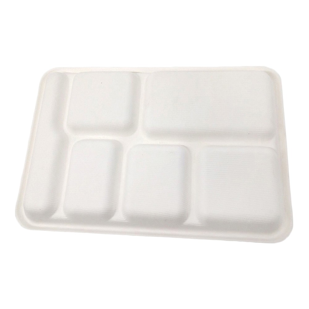 Custom Microwavable Biodegradable Bagasse Pulp 5 Compartment Tray