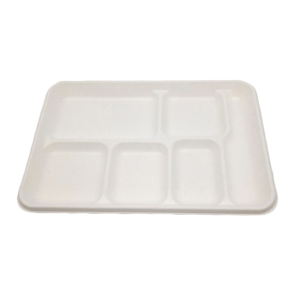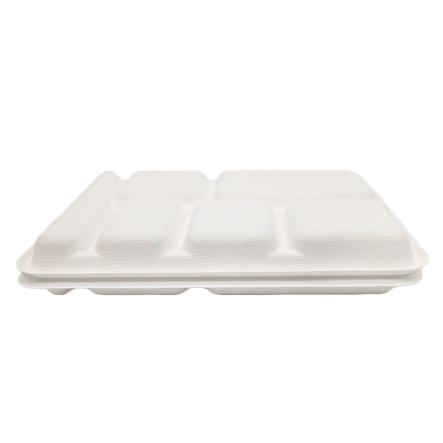 Hot Selling 6 Compartment Disposable Sugarcane Tray 100% Biodegradable Microwavable Bagasse Tray
